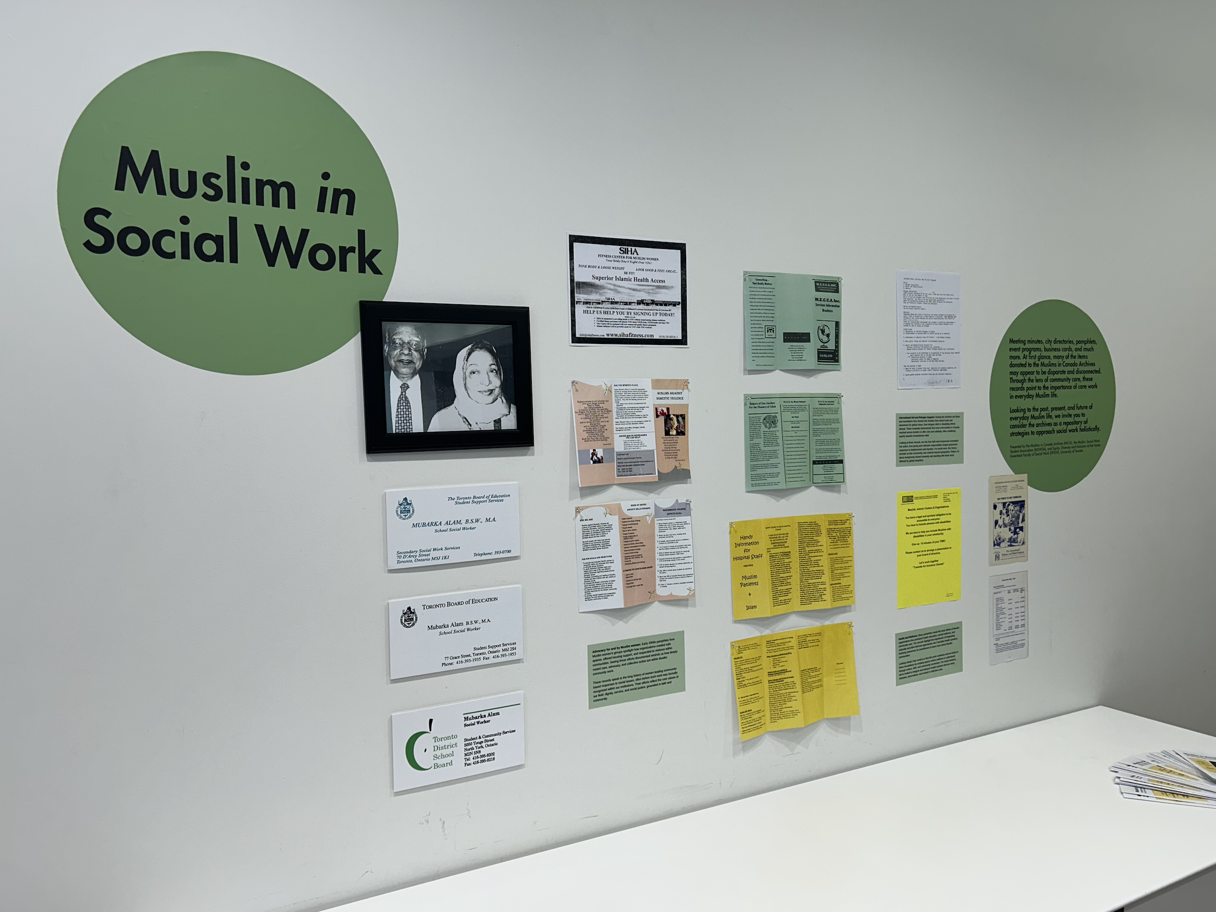 In collaboration with the Muslim Social Work Student Association and Equity, Diversity and Inclusion at the Factor Inwentash Faculty of Social Work, we’re pleased to have presented Muslim in Social Work. The exhibition invited visitors to consider the archives as a repository of strategies to approach social work more holistically. The exhibition also featured stories from Mubarka Alam, a donor at MiCA, whose materials document her work as one of the very first social workers assisting Muslim students.