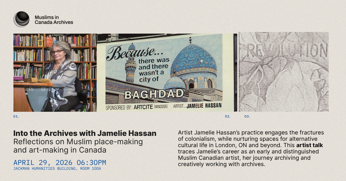 Join the Muslims in Canada Archives and Jamelie Hassan for an artist talk exploring creative and critical approaches to archiving Muslim histories.